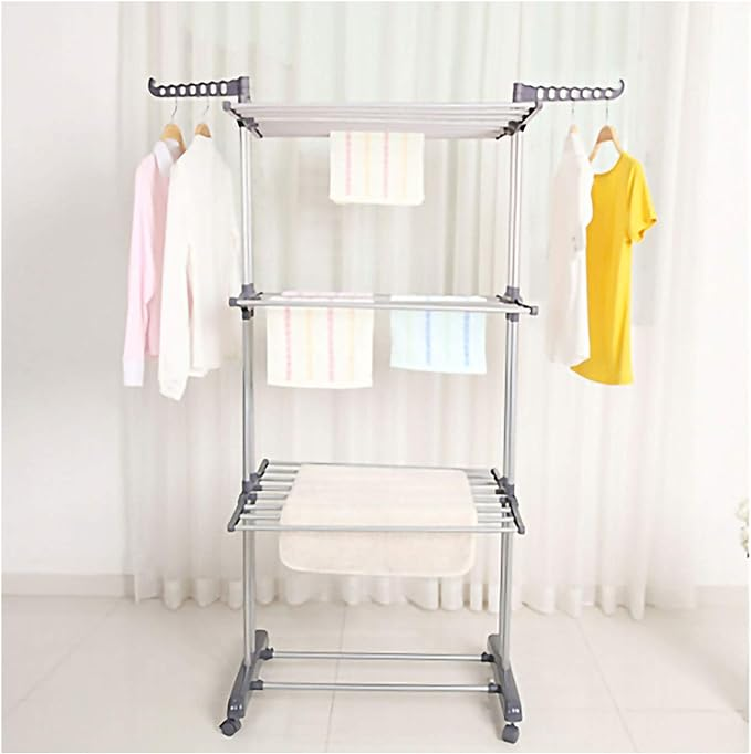 Three Layer Clothes Rack Hanger With Wheels For Drying Clothes